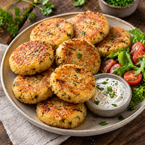 3) “Bulgur/köles/quinoa” pogácsák serpenyőben (maradék főtt gabonából)