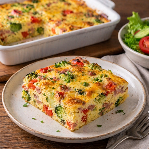 - A zöldséget (és a sonkát) dobd a formába.