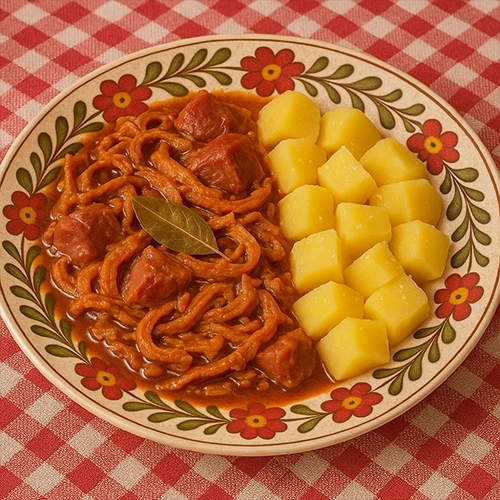 A csülkös pacal egy igazi magyar különlegesség, amely a hagyományos konyha egyik legmarkánsabb és legkarakteresebb fogása. A lassan főtt pacal és a füstölt csülök tökéletes harmóniát alkotnak, melyet a gazdagon fűszerezett szaft tesz igazán ínycsiklandóvá. A paprika, hagyma, fokhagyma és a babérlevél jellegzetes ízei mély, selymes mártást eredményeznek, amelyhez a sós burgonya tökéletes kísérő: egyszerű, de nagyszerű köret, amely hagyja érvényesülni a főfogás gazdagságát. Ez az étel nem csupán egy kiadós ebéd vagy vacsora, hanem egy igazi kulináris élmény, amely visszahozza a magyar vendéglők hangulatát. Ideális választás hétvégi családi ebédekre, ünnepi összejövetelekre, vagy ha egy igazán tartalmas, hagyományőrző fogással szeretnénk meglepni vendégeinket.