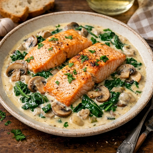 Lazac tejszínes-gombás mártásban: Gyors és Egészséges Főétel
