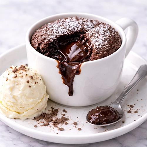 3) Bögrés “lava cake” mikróban (6–8 perc)